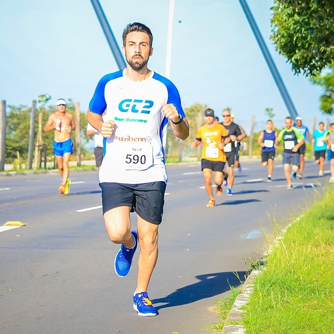 inúmeros benefícios. Por isso, formamos parceria com o grupo de corrida GT2 Best Runners. Assessoria esportiva, que tem como objetivo desenvolver a saúde e a socialização através da corrida. Bem como o aperfeiçoamento da técnica e da performance desse esporte. (FOTO Atleta Marcelo Rolloff)